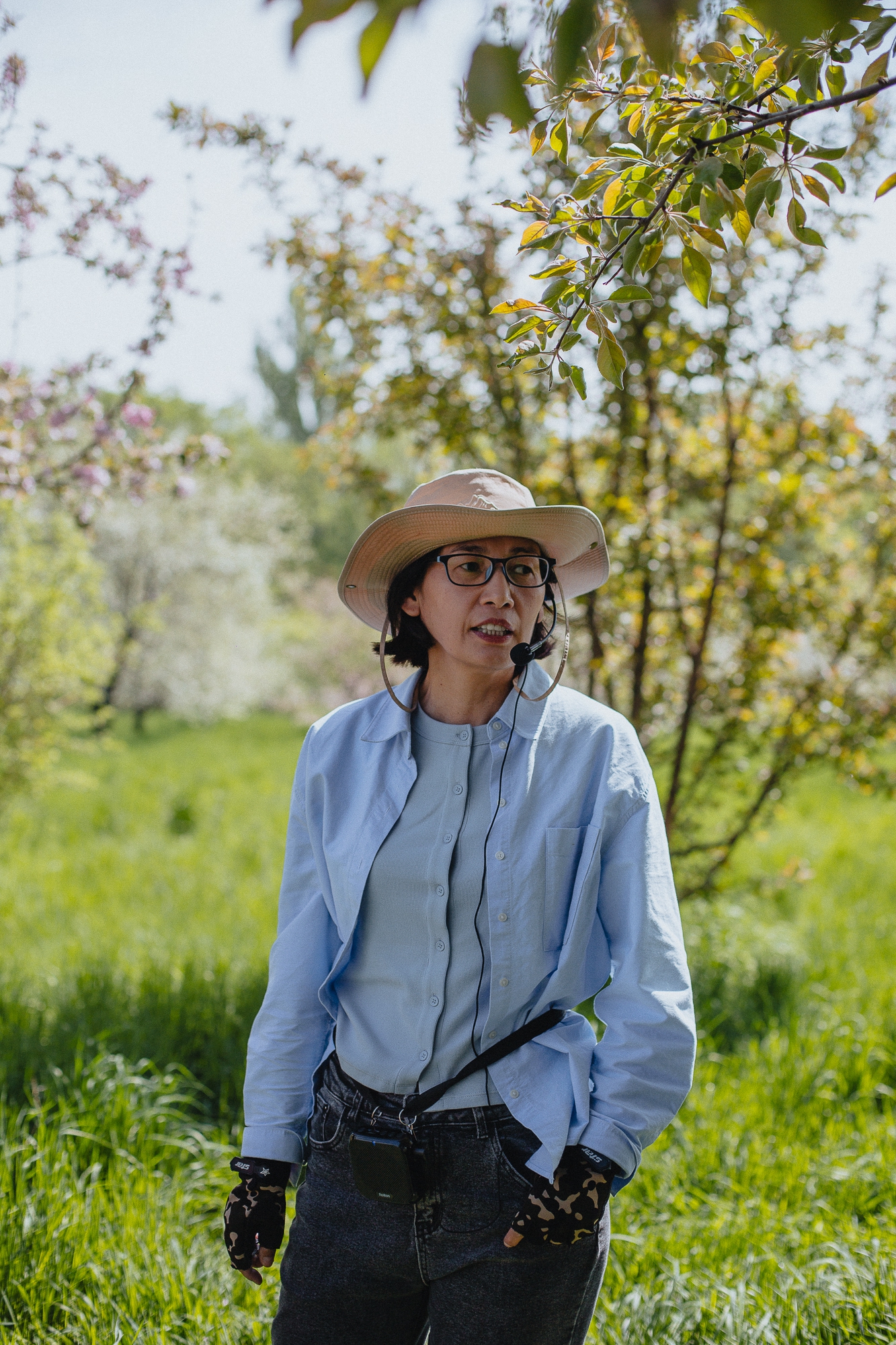 Гости не просто гуляли по яблоневому саду и наблюдали за цветением яблонь, но и слушали лекцию о яблоне Сиверса от заведующей лабораторией Охраны генофонда и интродукции плодовых растений им. академика А.Д.Джангалиева Гаухар Сейсенбековны Мукан.