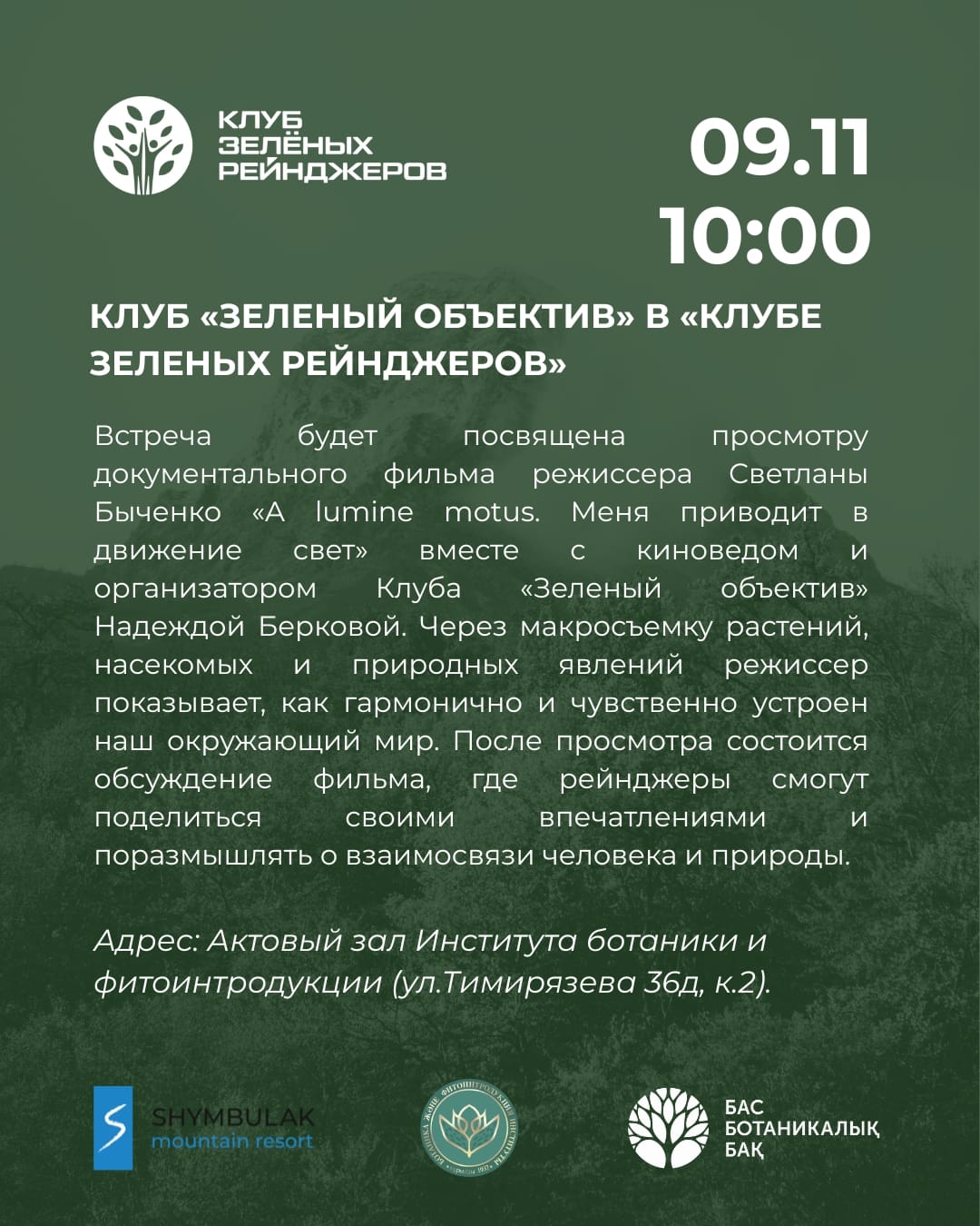 В ноябре в ботсаду пройдут заключительные встречи «Клуба Зеленых Рейнджеров», проводимые совместно с горным курортом «Шымбулак». Подробнее...