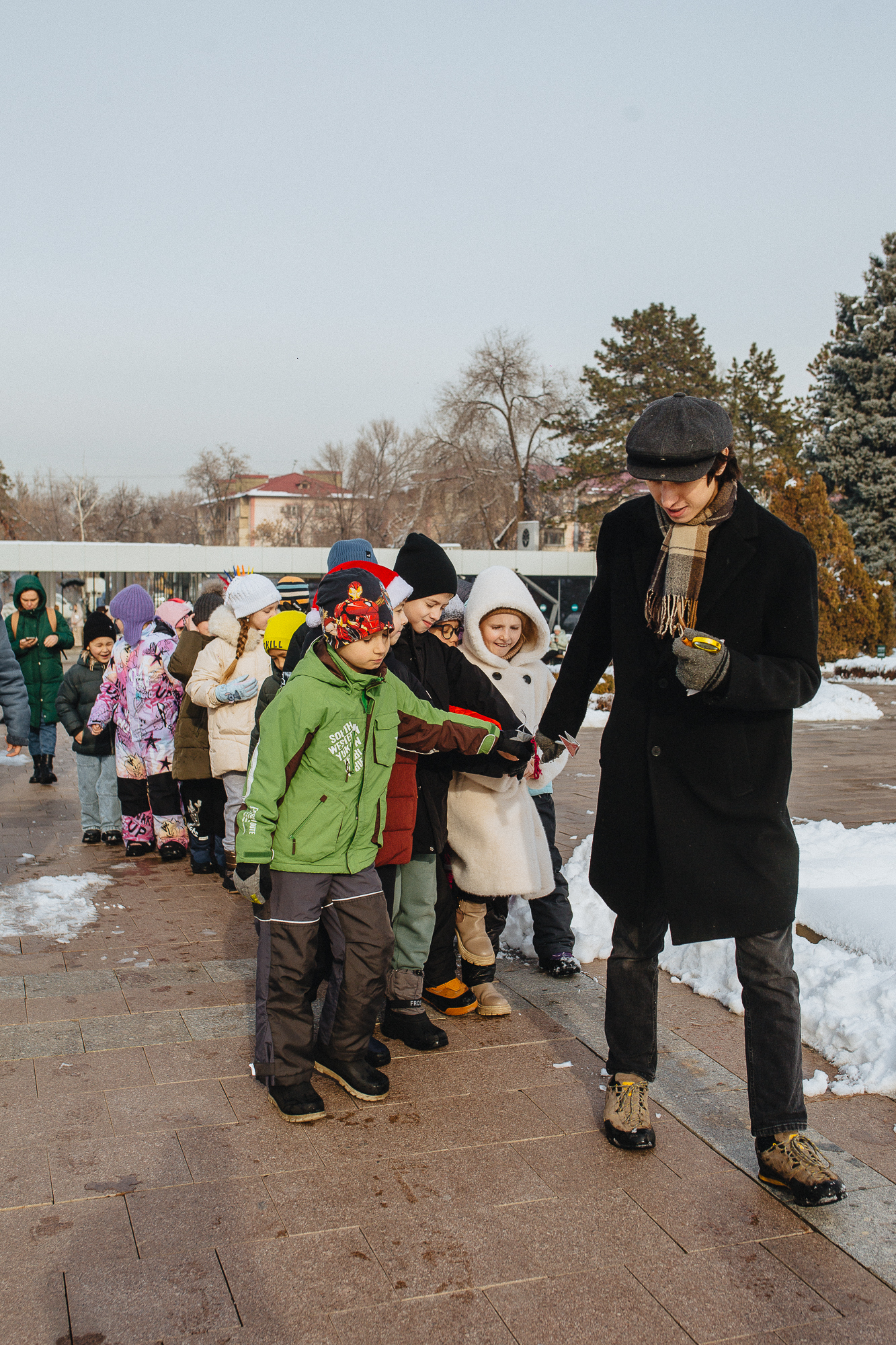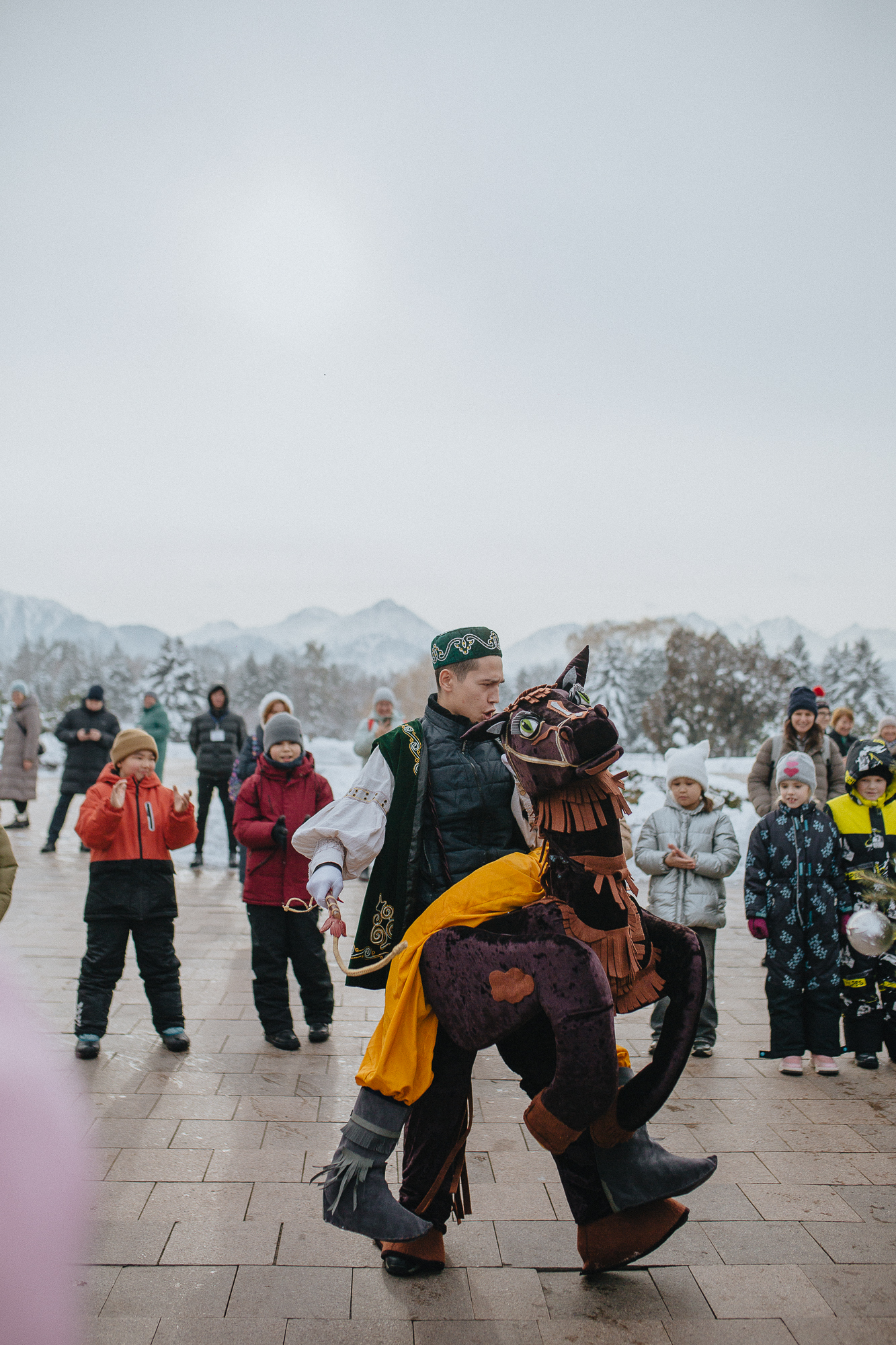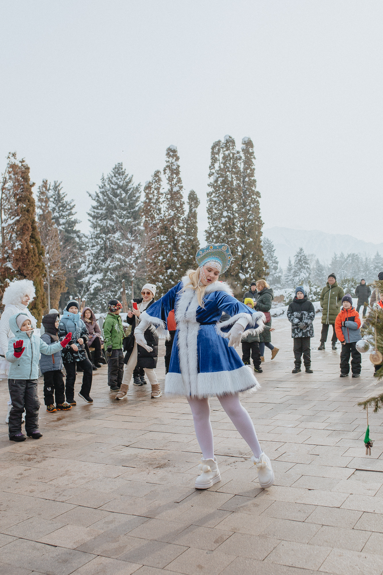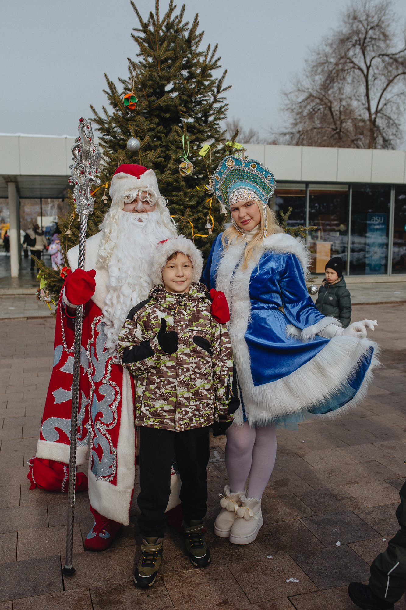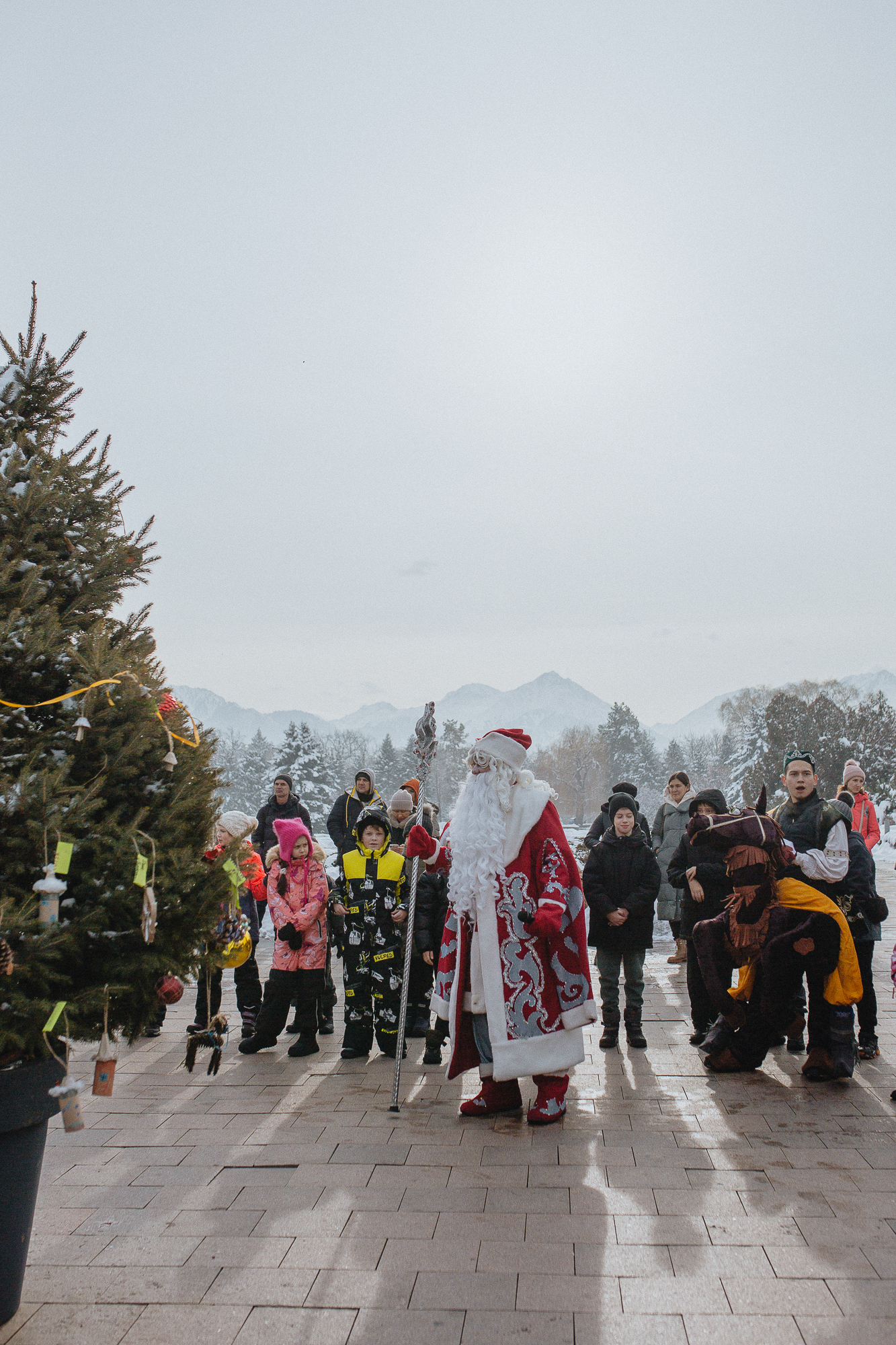 Балалар өз қолдарымен жасаған ойыншықтарымен шыршаны сәндеді. Одан кейін Аяз ата, Ақшақар, Снежок және Алдар Көсемен бірге билеп, ән айтып, шеңбер жасап, түрлі ойындар ойнады.