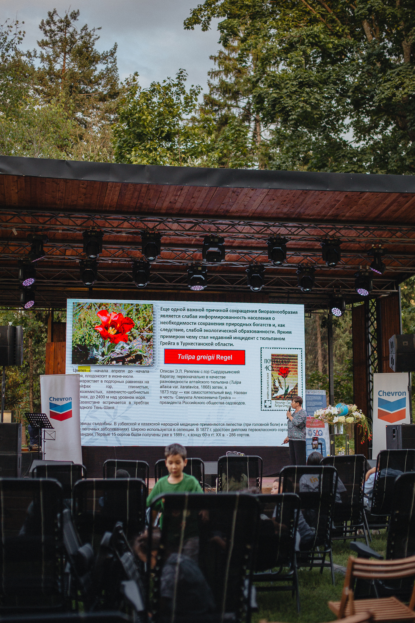 А заведующая лабораторией флоры высших растений Института ботаники и фитоинтродукции Веселова Полина Васильевна прочитала научно-популярную лекцию на главной сцене фестиваля на тему: «Красная Книга - сигнал бедствия из мира растений».