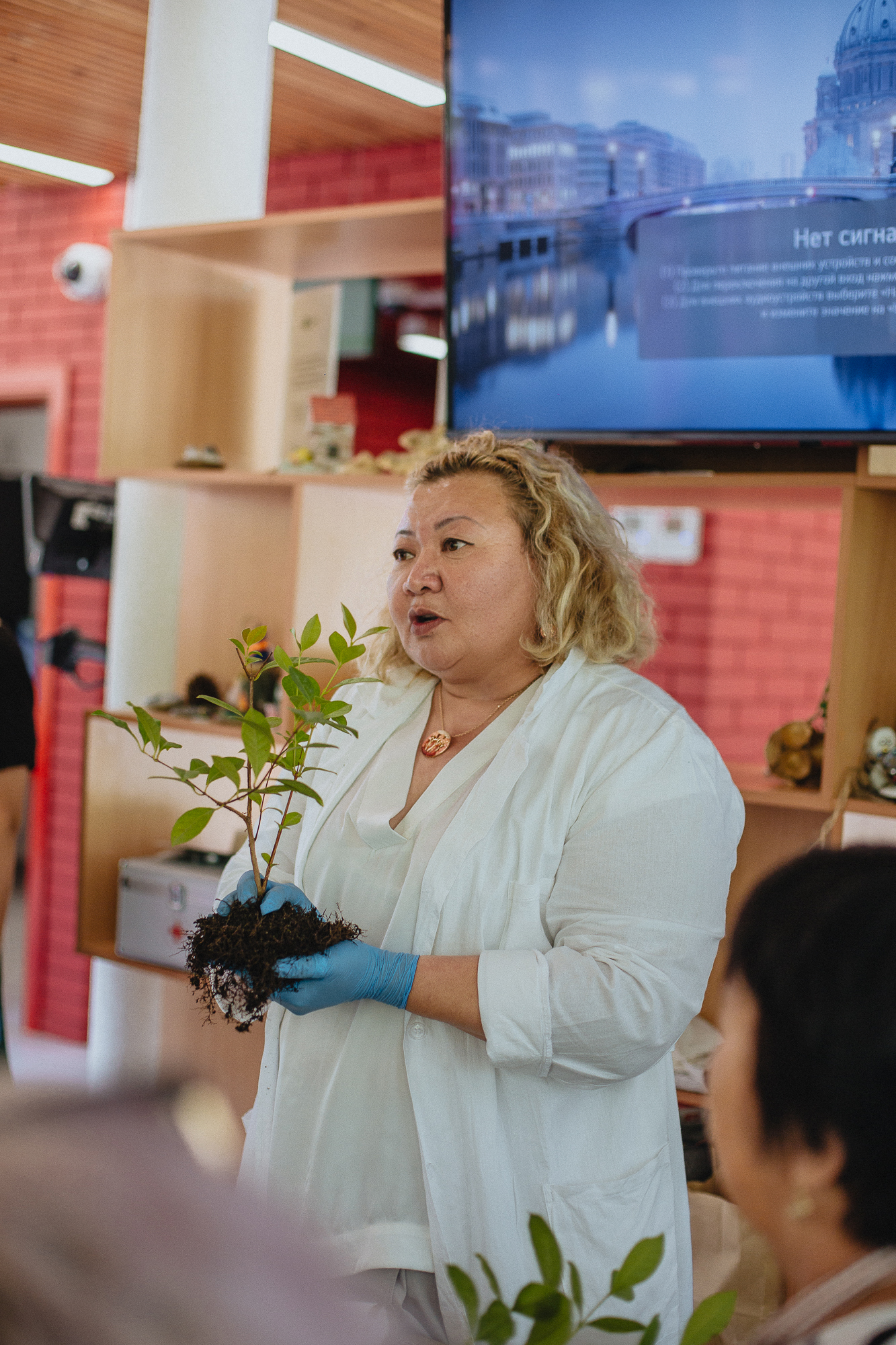 Руководитель отдела маркетинга Коспенбетова Баян Кадыржановна презентовала образовательные программы для детей и взрослых, которые реализует Институт в ботсаду.