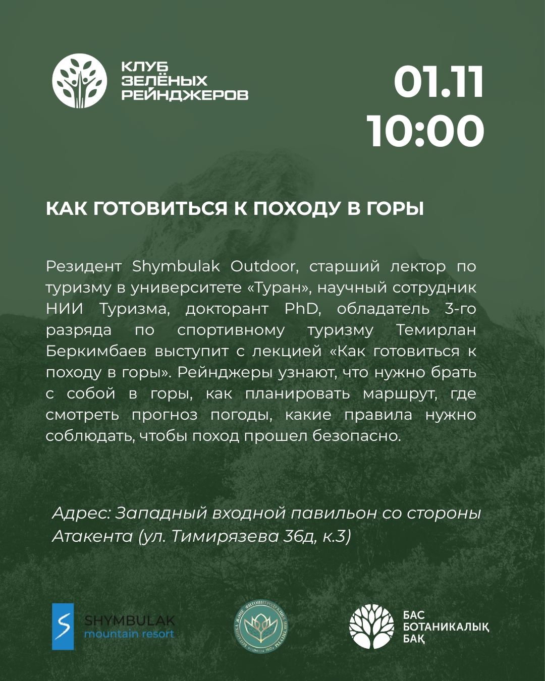 В ноябре в ботсаду пройдут заключительные встречи «Клуба Зеленых Рейнджеров», проводимые совместно с горным курортом «Шымбулак». Подробнее...