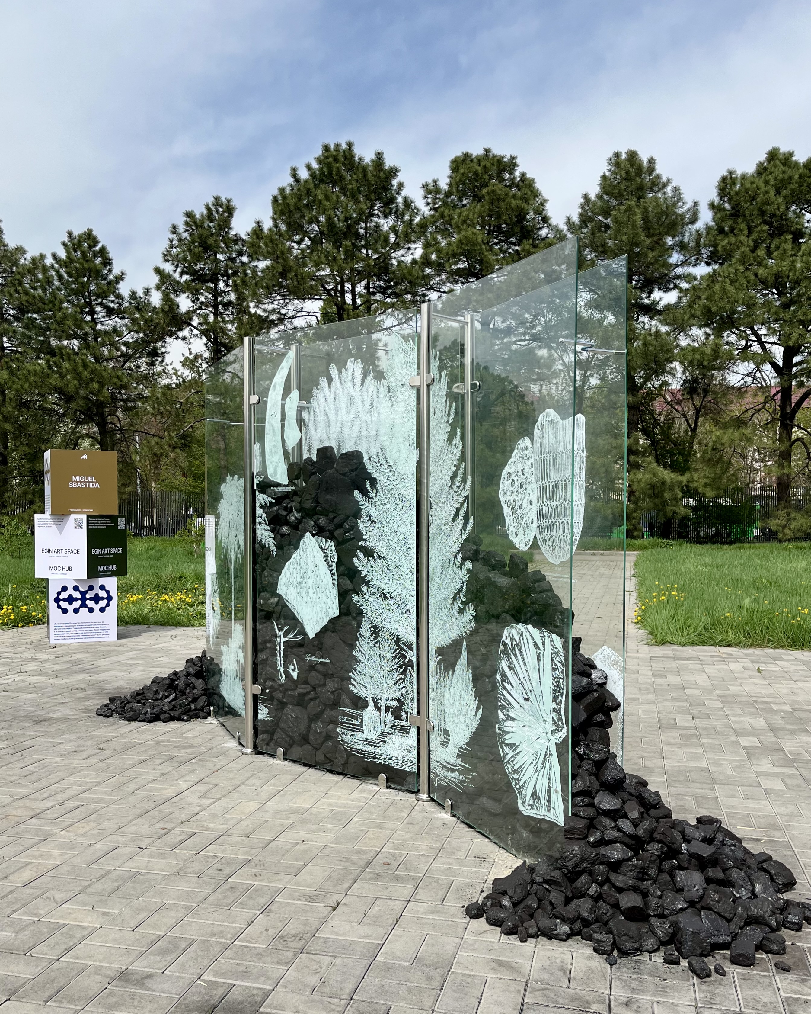 Второй арт-объект «Дыхание углерода» - иммерсивная инсталляция, посвященная геологической истории и экологическим последствиям использования древесного угля. Через образцы угля и иллюстрации древней флоры, автор размышляет о «древнем дыхании» растений, высвобождающемся при сжигании ископаемого топлива, приглашая переосмыслить понятия углерода, климата и времени. Автор проекта — испанский художник Мигель Сбастида.